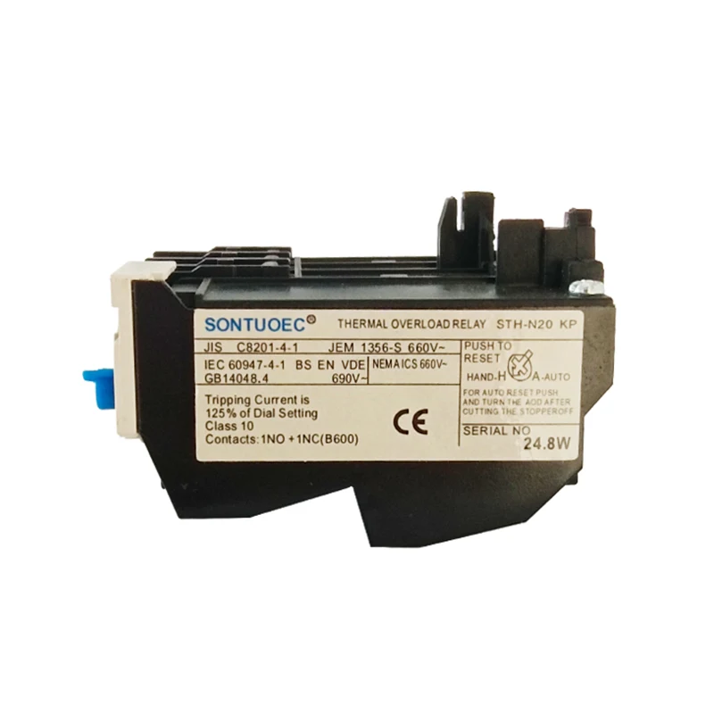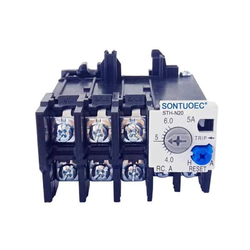 Das Betriebsprinzip des STH-N-Modells thermischen Relais basiert auf dem thermischen Effekt des elektrischen Stroms. Wenn der Motor überlastet ist, nimmt der Strom, der durch das thermische Relais fließt, und führt dazu, dass das Heizelement mehr Wärme erzeugt. Diese Wärme bewirkt, dass sich das Bimetal beugt und verformt, und wenn die Verformung einen bestimmten Abstand erreicht, drückt sie den Verbindungsstab zum Handeln, wodurch die Kontakte zerbrechen und so die Stromversorgung des Motors abschneiden.
